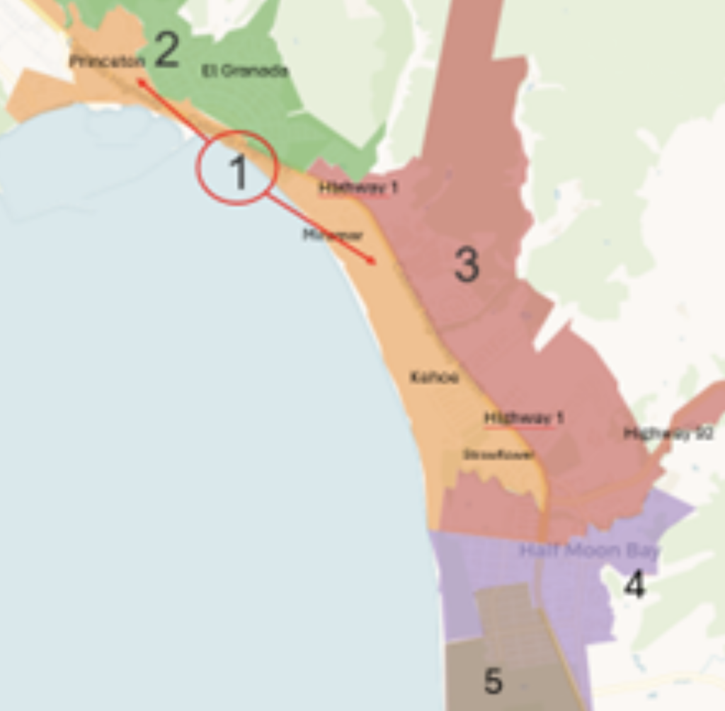 “The map is difficult, particularly in the northern end of Zone 1.  The easy section to explain is that Zone 1 includes the west side of Highway 1 going north from Strawflower to Princeton-by-the-Sea. However, the difficult section to explain is the northern end of Zone 1 located on the east side of Hwy 1 that includes some areas of Bridgeport, Sonora and Coral Reef, but not all – as some of these neighborhoods are in Zone 2. If there is a question, our office can confirm.” Contact: You can call 650-726-4405, M-F 8AM-5PM OR customerservice@coastsidewater.org.