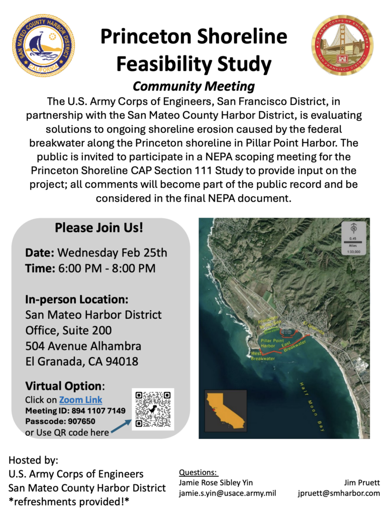 PRESENTATION. From the Army Corp of Engineers and San Mateo County Harbor District on February 25th, 2026 from 6:00pm to 8:00pm.