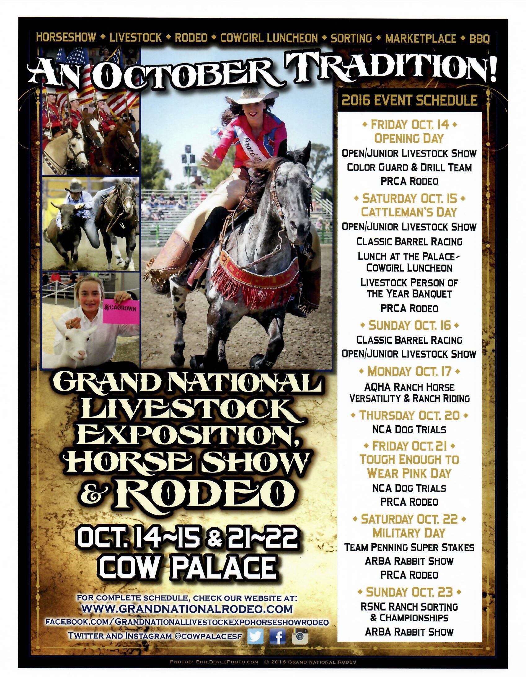 and the Grand National Rodeo, at the Cow Palace, Oct. 14, 15 and Oct. 21,22