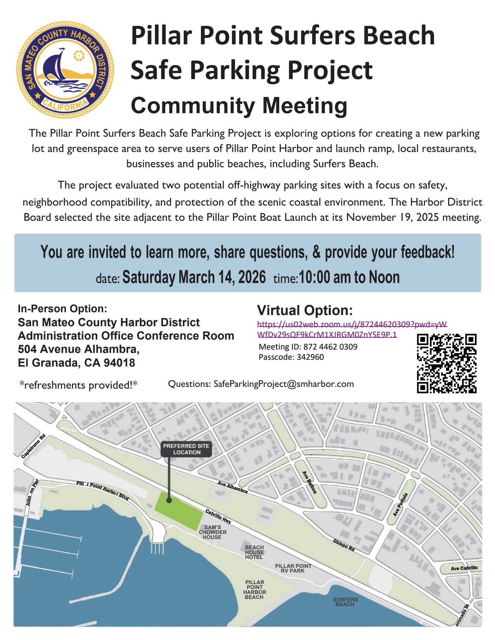 VIDEO. From the San Mateo County Harbor District Special meeting on Saturday (usually Wednesdays), March 14th, 2026 meeting, at 10:00am, as a hybrid meeting with remote comments. Meetings are held in person at the SMCHD Administration Building, 504 Avenue Alhambra, Ste. 200, El Granada.