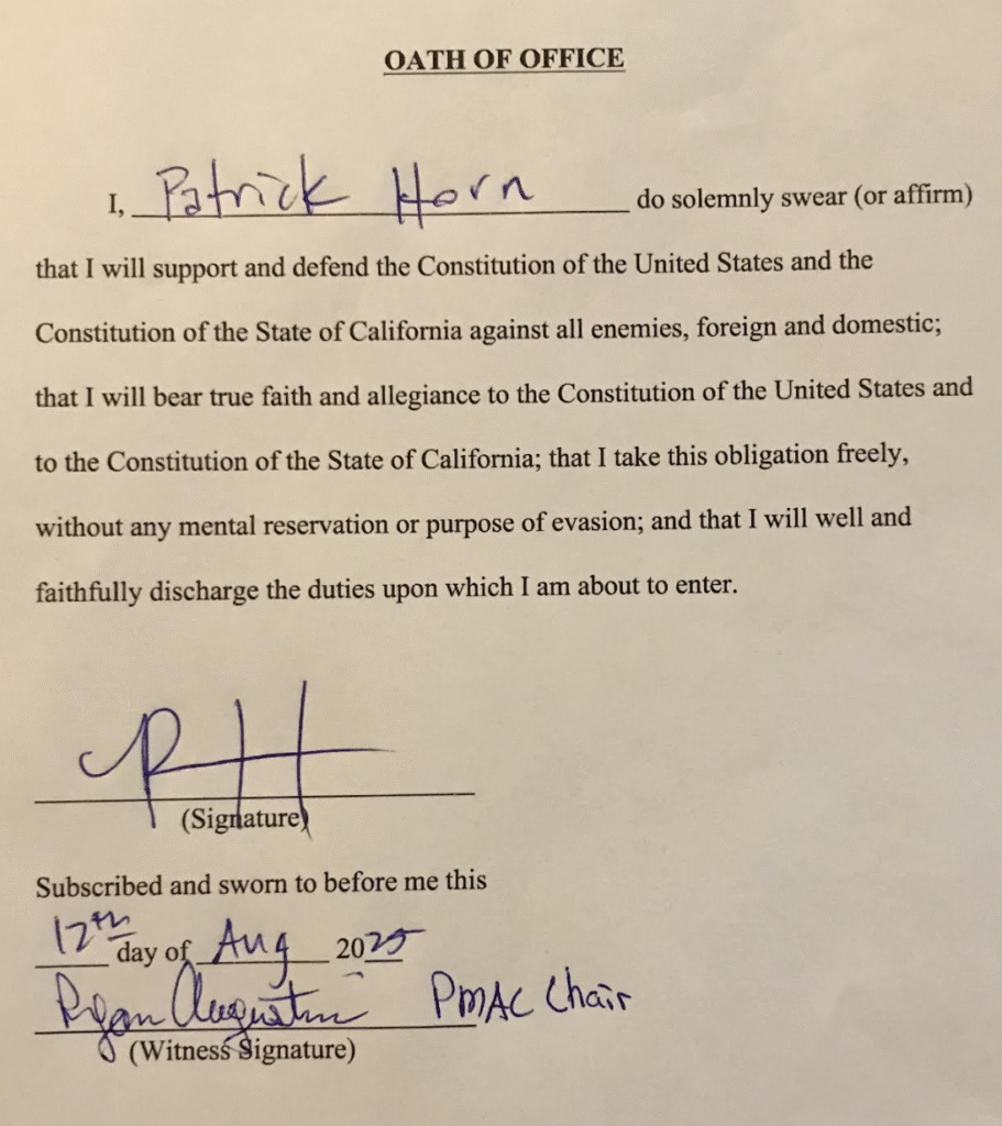 Swearing in Councilor Patrick Horn (20 min) August 12th, 2025